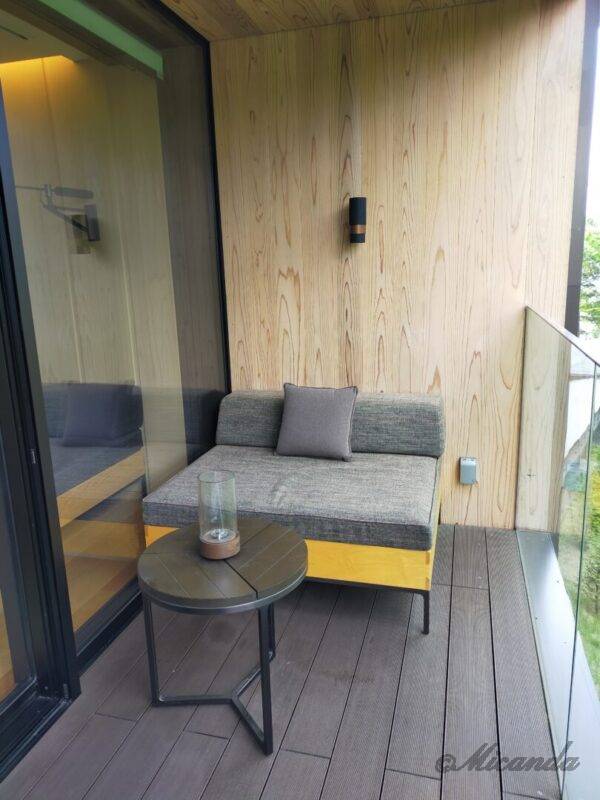 こちらの席でお庭を眺めながらゆっくりとお水をいただきました。