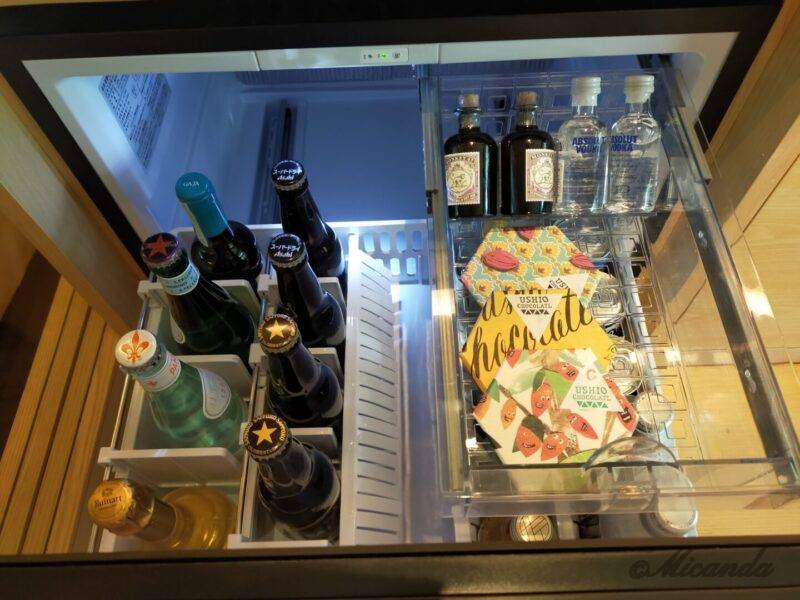 ソファー横の棚はお茶セットや冷蔵庫がありました。
