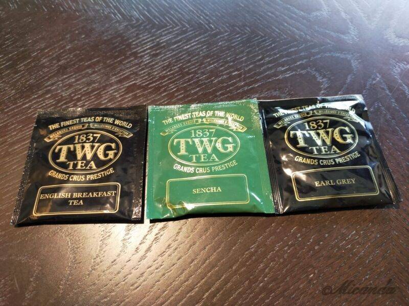 お茶はシンガポール創業の紅茶専門店TWGのイングリッシュブレックファスト、煎茶、アールグレーが用意されていました。