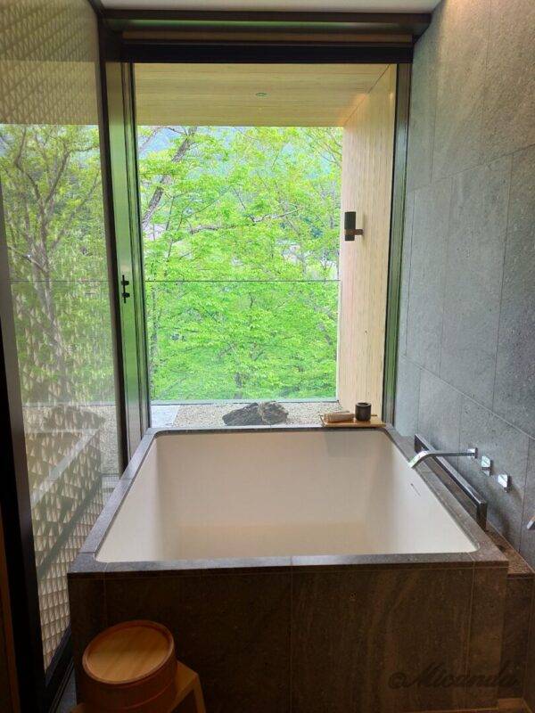 ザ・リッツ・カールトン日光さんには素敵な温泉浴場が別にあるのですが、お部屋のお風呂も広々としていました。