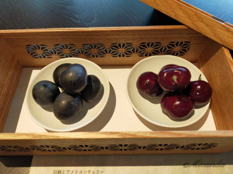 アフタヌーンティーから戻ると巨峰とアメリカンチェリーがセットされていました。