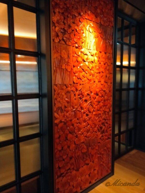 こちらは日本料理レストランにある素晴らしすぎる日光彫りの作品です。