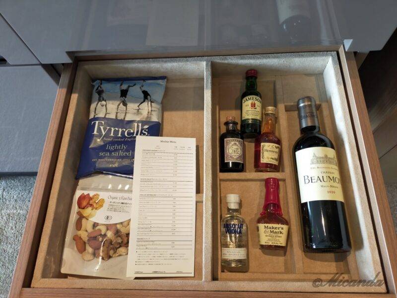 こちらの引き出しは有料のお酒とスナックコーナーです。