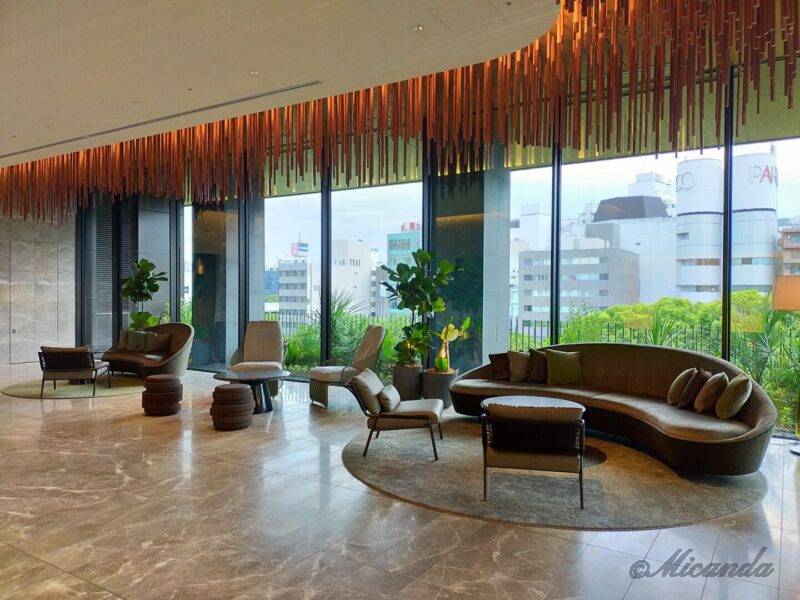 ロビーには素敵なソファーが置かれており、天井からの装飾が印象的でした。