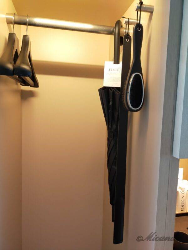 寝室のクローゼット①は洋服ブラシ・靴べら・雨傘がありました。