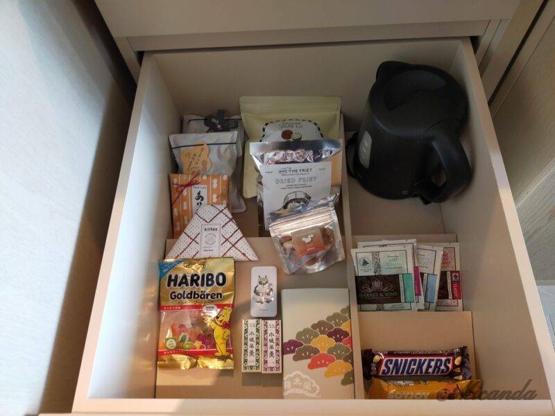 お菓子(有料)は他のホテルではあまり見かけないようなこだわりの品揃えでした。