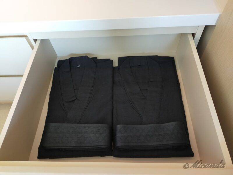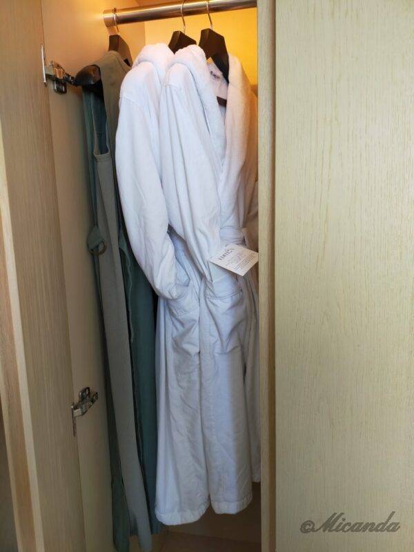 クローゼット②にはさり気なくお袖をポケットinしたバスローブが入っていました。