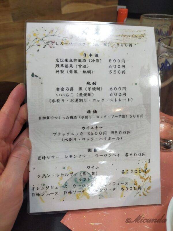 ドリンクメニュー