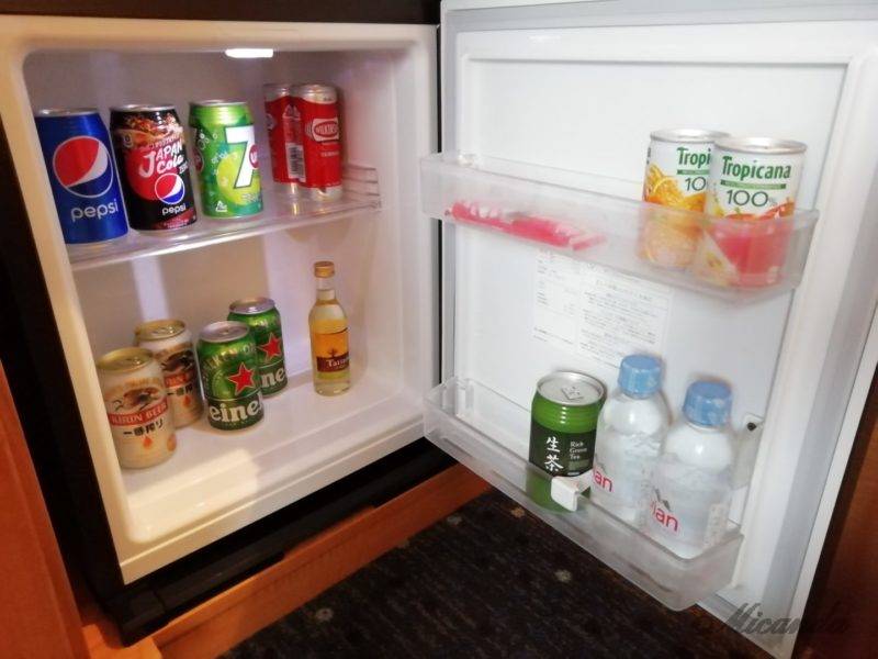 コーヒーメーカーの下あたりに冷蔵庫がありました。