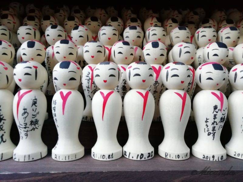 縁結びのお寺でもある円通院にはかわいいこけし型絵馬(でいいのかな?)が並んでいました。
