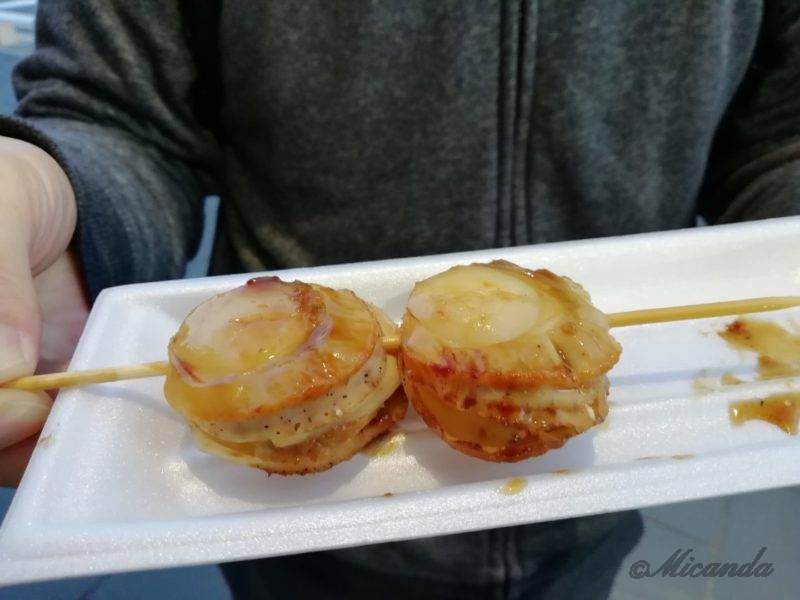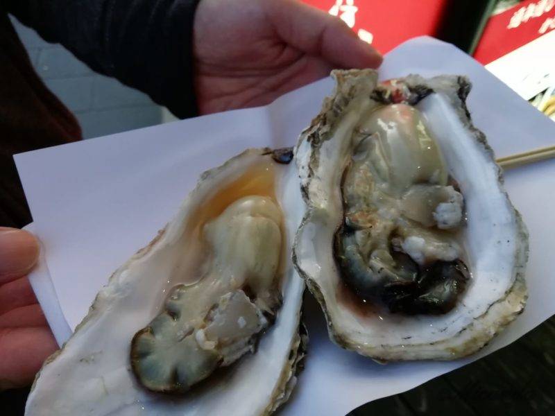 松島にはおいしい食べ物がたくさんあったのですが、私たちは焼きたてせんべい、焼き牡蛎、ほたて焼きをいただきました。