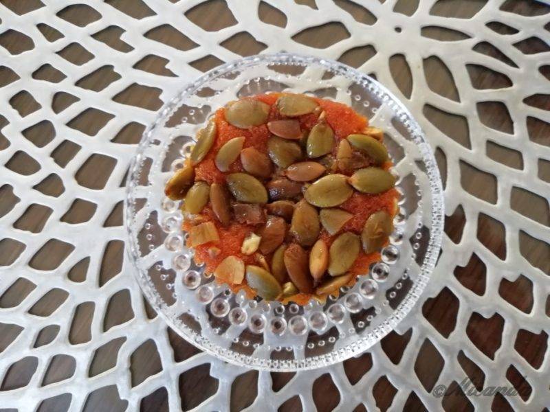 キャラメルがけされたかぼちゃの種が上にたっぷりと乗っています。