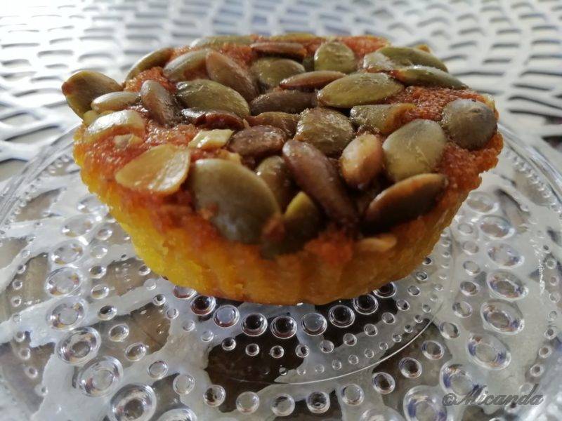 上にたっぷりとキャラメルがけされたかぼちゃの種が乗っています。