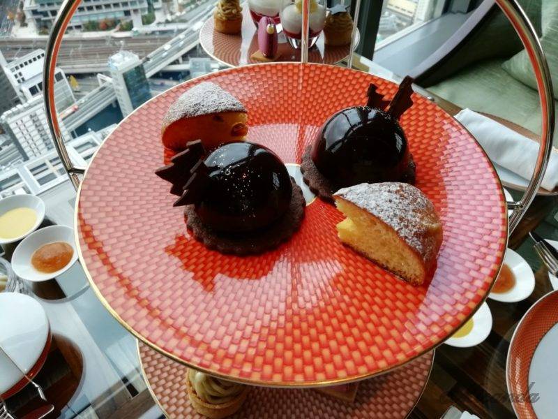 東京の街を一望できる雰囲気のよいラウンジでちょっぴりクリスマスを感じられるスイーツや紅茶をいただきました。
