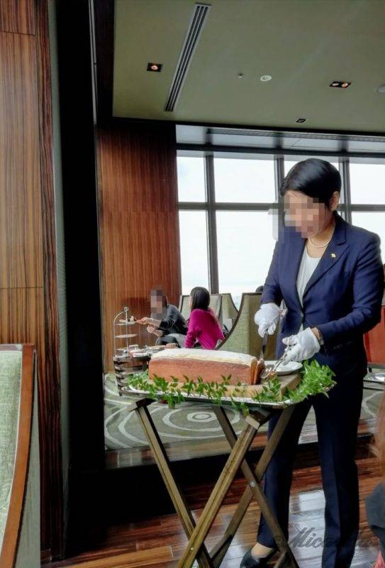 ホテルの方がテーブルの近くでメープルパウンドケーキを切って下さいました。