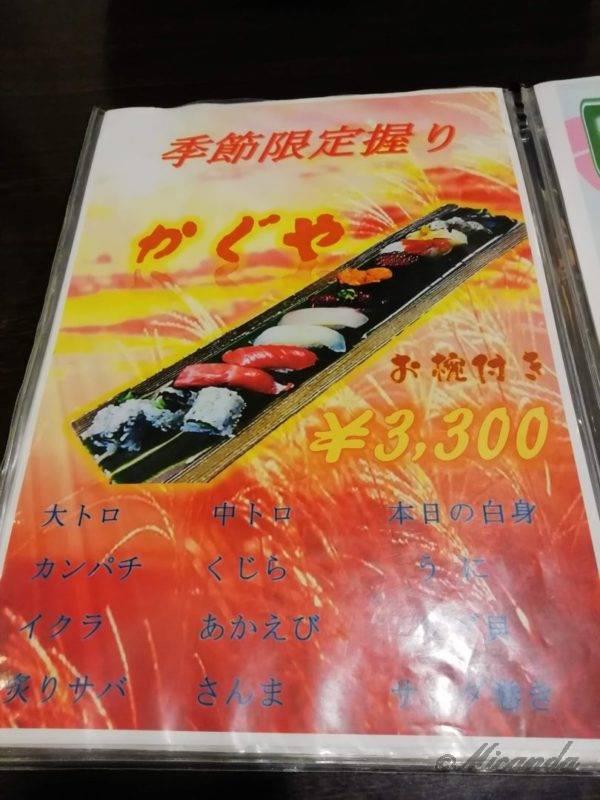 いくつかあるメニューの中から『かぐや』という握りセットをいただきました。
