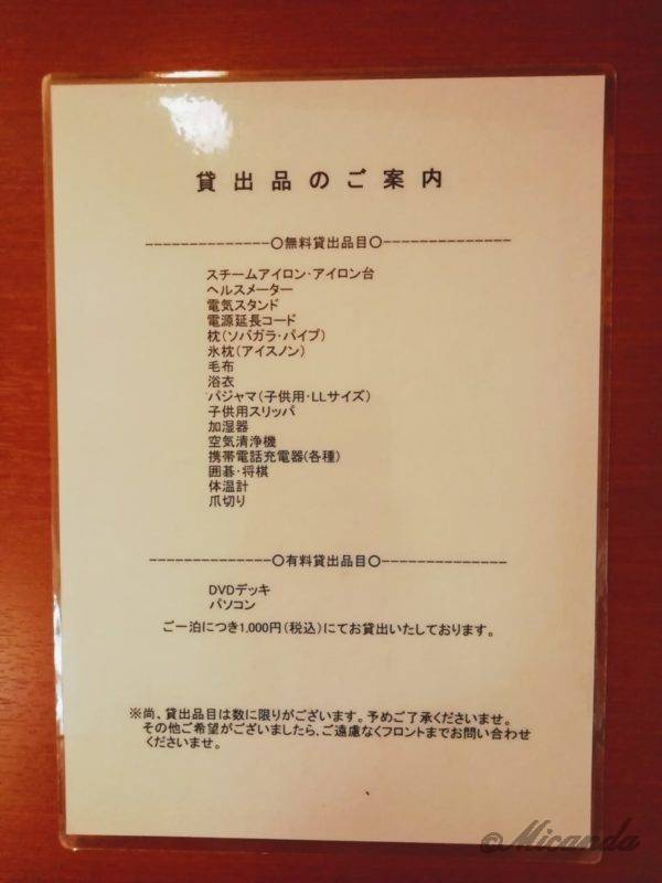 貸出品リストがデスクの引き出しに入っていました。