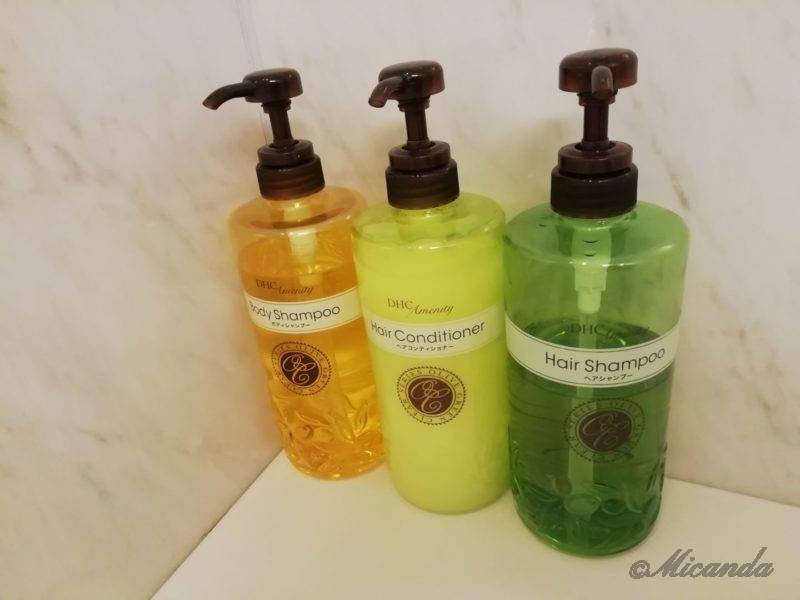 シャンプー、コンディショナー、ボディシャンプーはDHCのものでした。