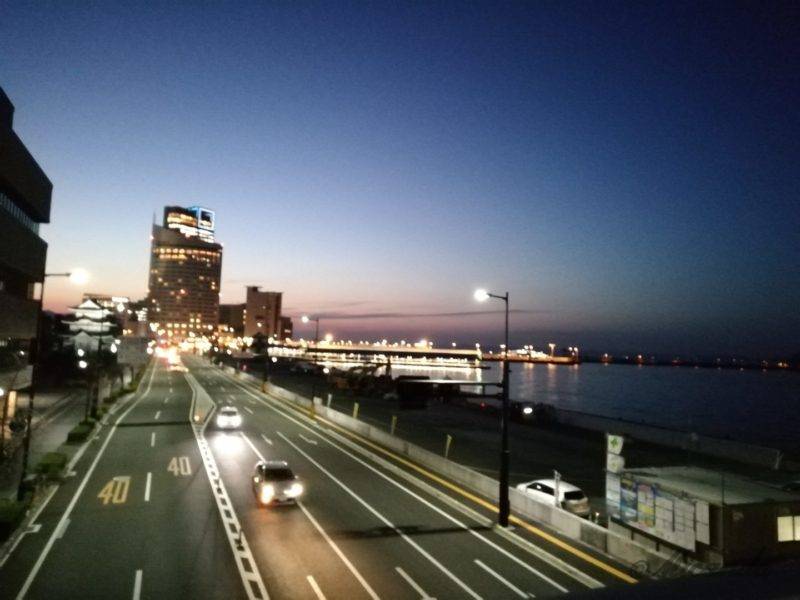 ピンボケしてますが、歩道橋から見た空のグラデーションが美しかったです。