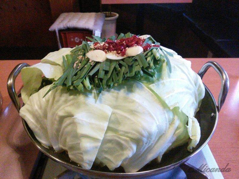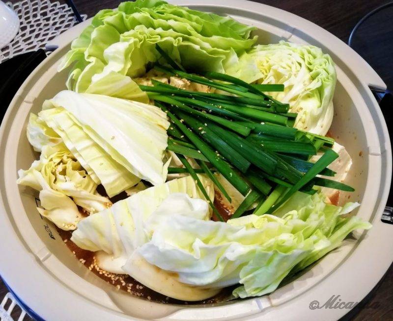 軽く別の鍋で下茹でしてから、もつ鍋のお汁にいれて煮込みます。
