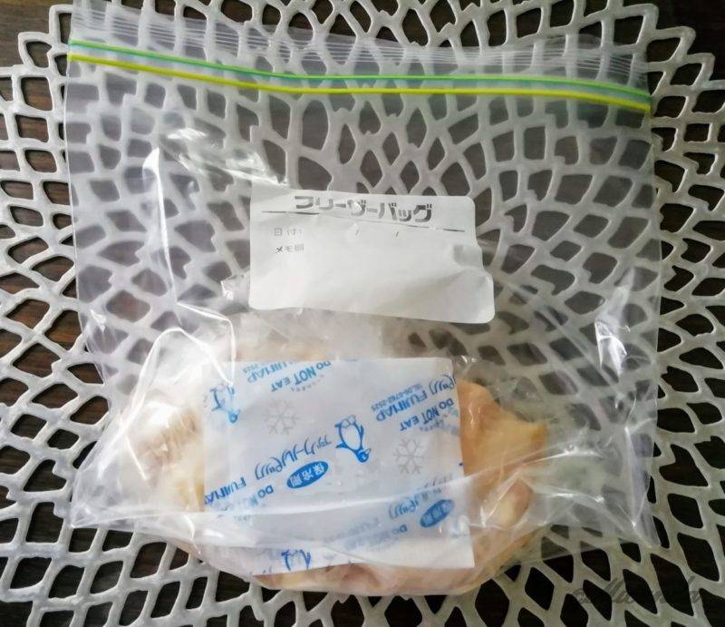 ビニール袋に入れたモツは保冷剤と共にフリーザーバッグに入っていました。