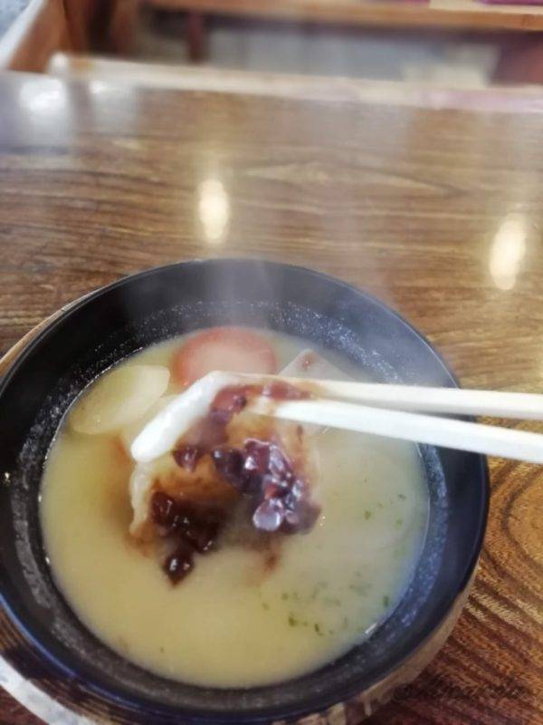 あん餅をお汁と共にいただくと甘じょっぱくておいしかったです。