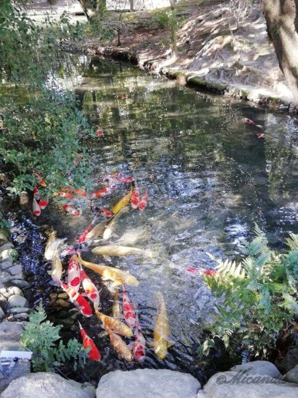 まず、園内に入ると美しい水が流れる水路をたくさんの鯉が気持ちよさそうに泳いでいました。