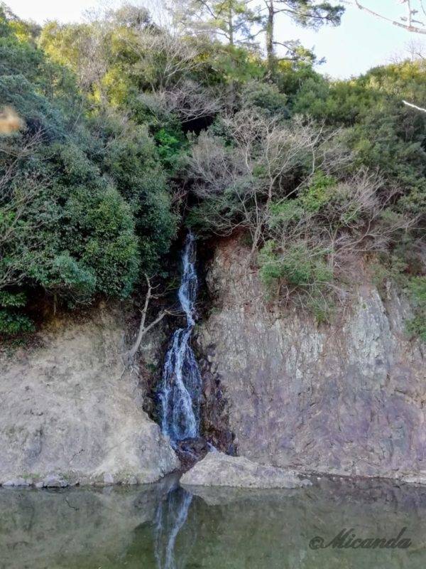 掬月亭を出て、しばらく散策をしていると小さな滝がありました。