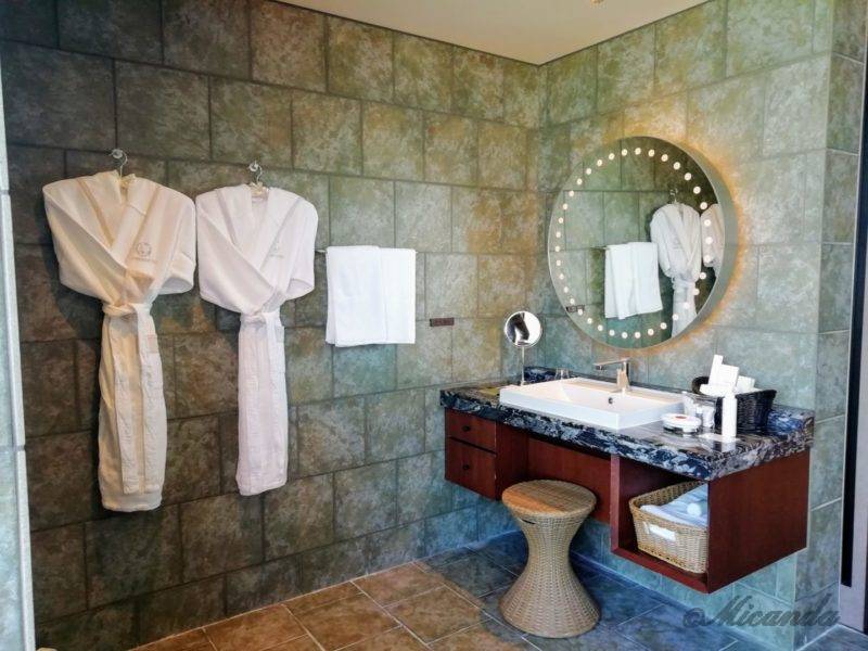 この写真では分かりづらいですが、バスルームと美しい海が眺められます。