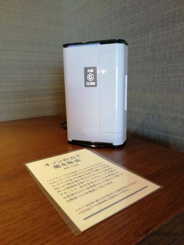 棚の上には、ウイルスをオゾンの強力な酸化作用で分解し、耐性菌を発生させないという特長を持った除菌脱臭器がありました。