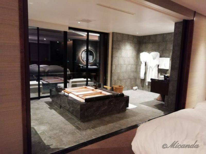お昼は美しい海を眺めながら、夜は素敵なバスルームを楽しみながら、何度も温泉を楽しみました。