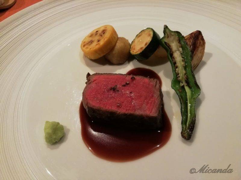 豊後米仕上牛フィレ肉のロースト ソース ヴァンルージュ 天城産 生わさびのアクセント