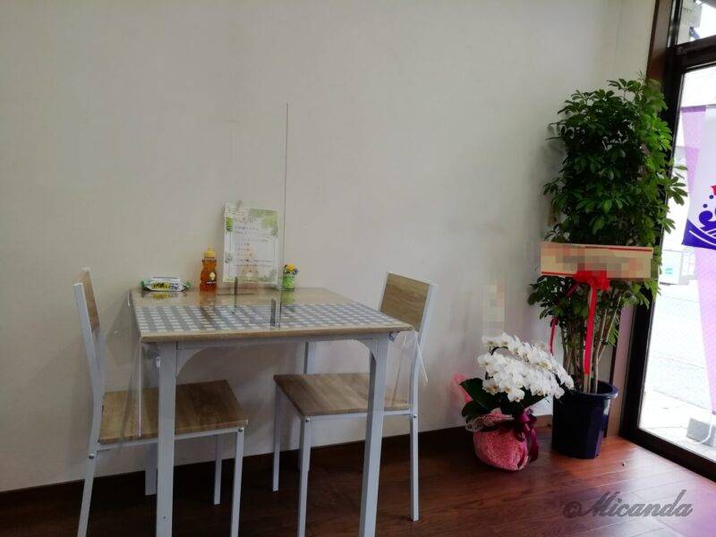 透明なので分かりづらいですが、テーブルの中央には飛沫飛散防止用のアクリル板が用意されて、対策も万全にされていました。
