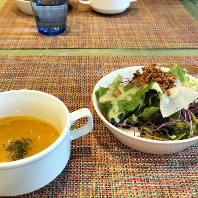 ランチセットのスープ(ビシソワーズ)とサラダです。