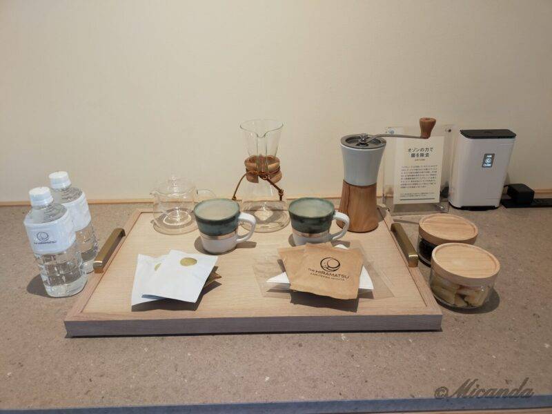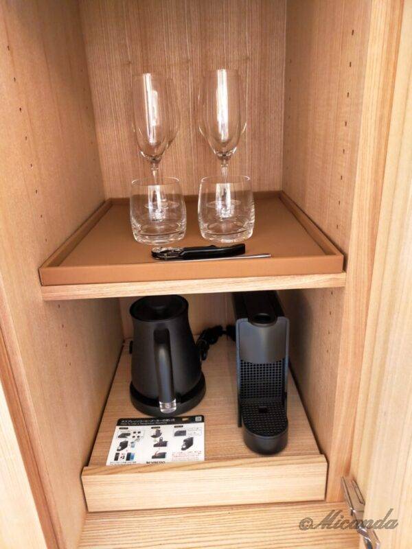 ミニバーにはコーヒーミルやティーポットまで用意されていました。