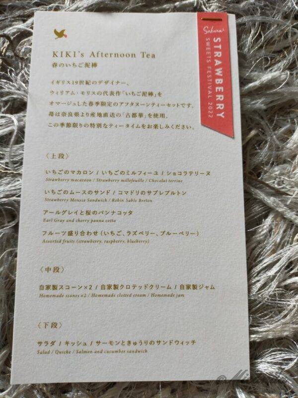 4月のことになりますが、東京ミッドタウン日比谷店内にオープンしたTEA ROOM KIKI でアフタヌーンティーをしてきました。