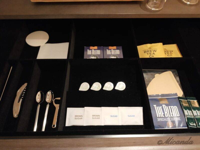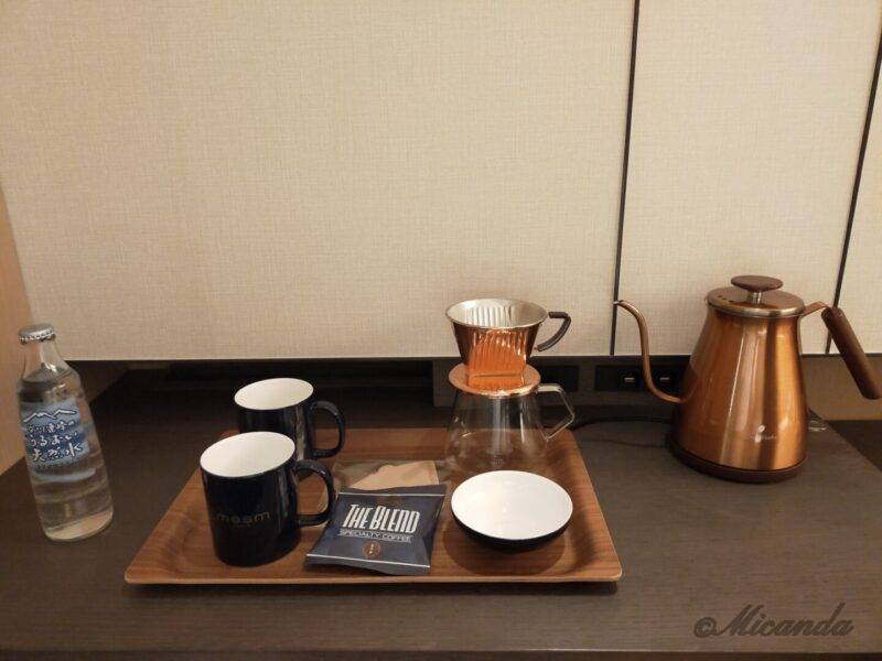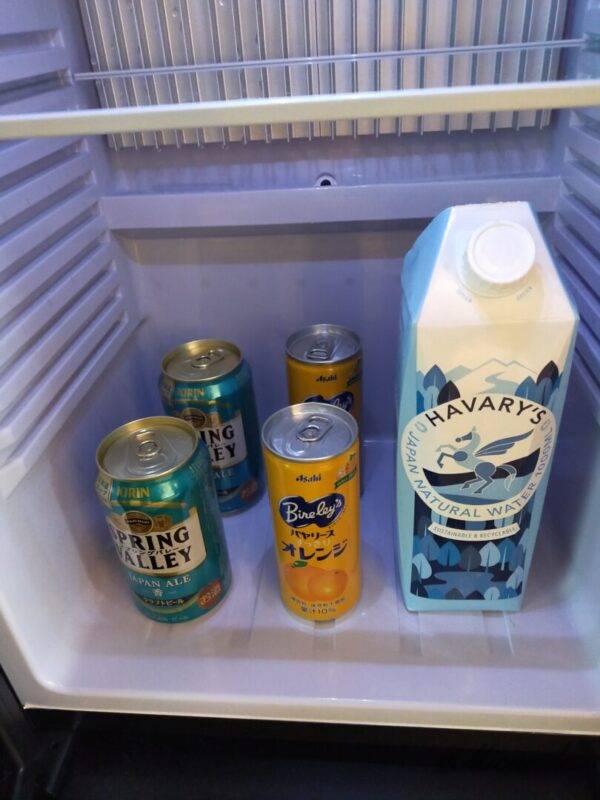 猿田彦コーヒーのドリップコーヒー(メズムオリジナル竹芝ブレンド)、ブリューティーカンパニーの紅茶、抹茶(お茶碗・茶せんも有)、オレンジジュース、ビール、お水がありました。