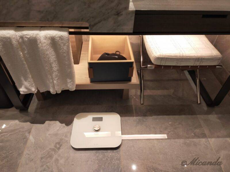 シンク下に体重計、ドライヤーがありました。