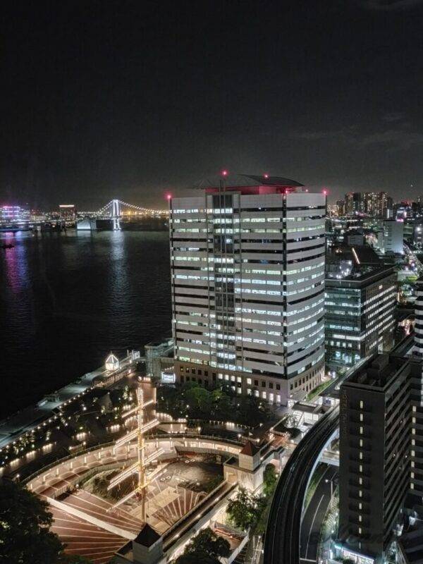 夜はビル群の明かりが美しく、昼は海を眺められる素敵なお部屋でした。