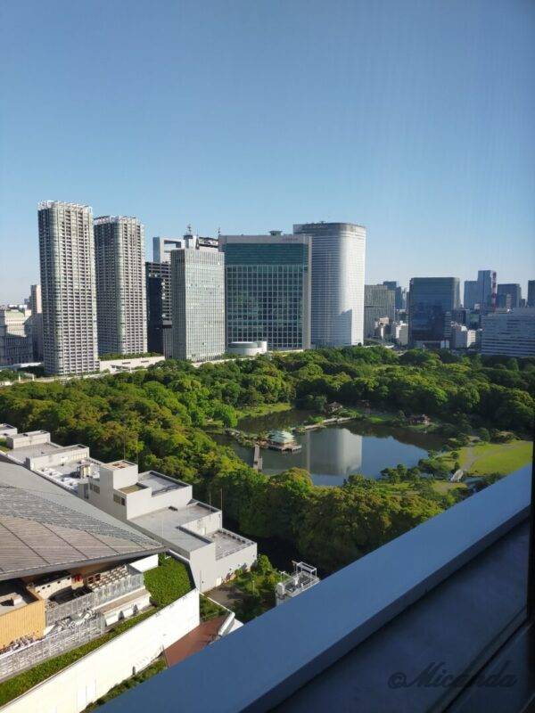 朝食をいただいた「シェフズシアター」からは浜離宮恩賜庭園とビル群を眺めることができました。