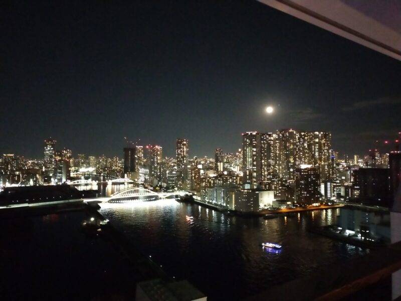 メズム東京の眺めというと浜離宮、築地大橋、スカイツリー側のお部屋を他の方のブログで見させてもらう機会が多いですが、私達が宿泊したお部屋はその反対側の眺めです。