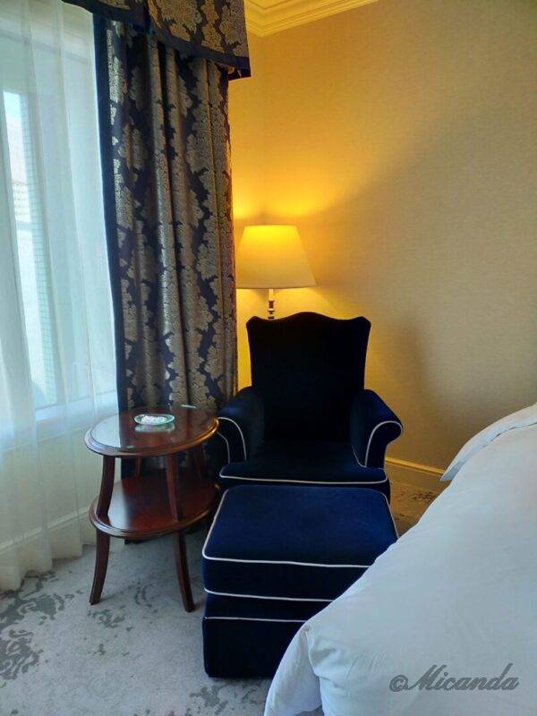 こちらはベッドの横にあったオットマン付きの一人掛けソファーです。