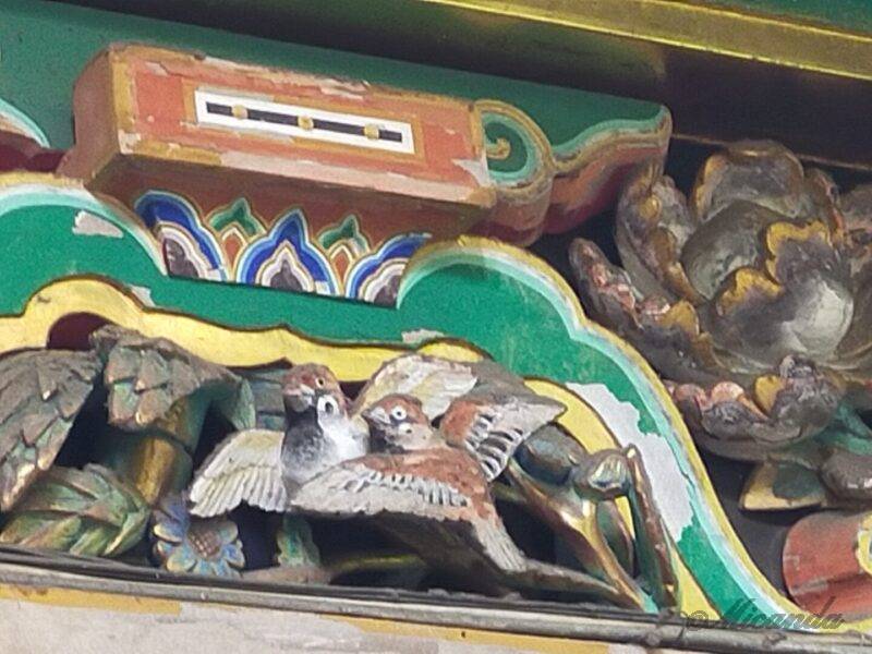 スズメが安心して遊べる平和な世の中を願い彫られたそうです。